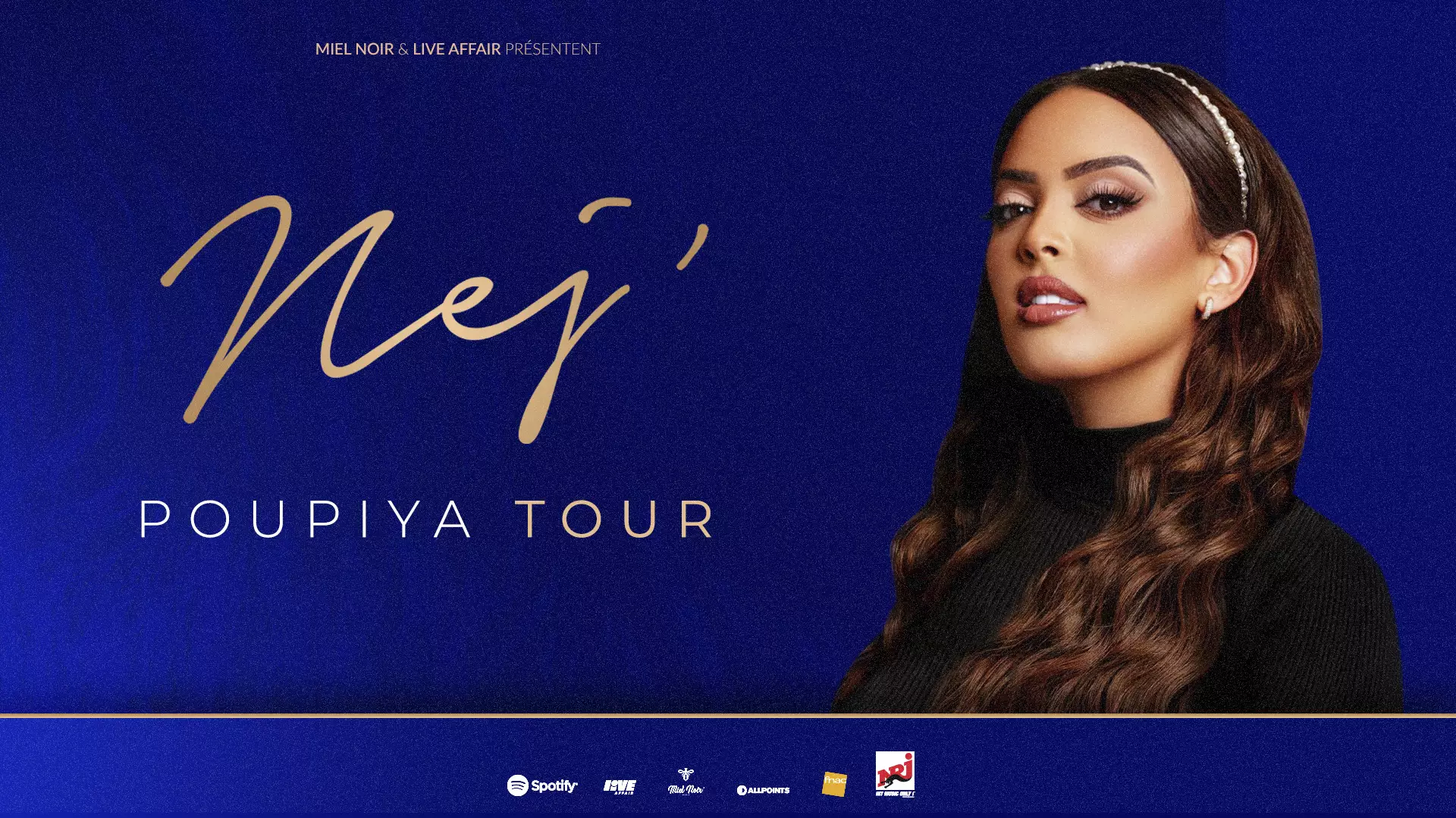 Nej’ est l’une des artistes les plus prometteuses de la scène musicale française. Véritable fusion de pop urbaine et de sonorités orientales, sa musique séduit par son originalité et son énergie. Depuis ses débuts, elle enchaîne les succès avec des titres phares comme « I Miss U », « Paro » et « Ma Colombe », captivant un large public. Son premier album « Enchantée », sorti en 2020, a affirmé son style unique, mêlant mélodies envoûtantes et influences diverses. Avec une voix puissante et une personnalité charismatique, Nej’ s’impose comme une figure incontournable de la musique moderne.