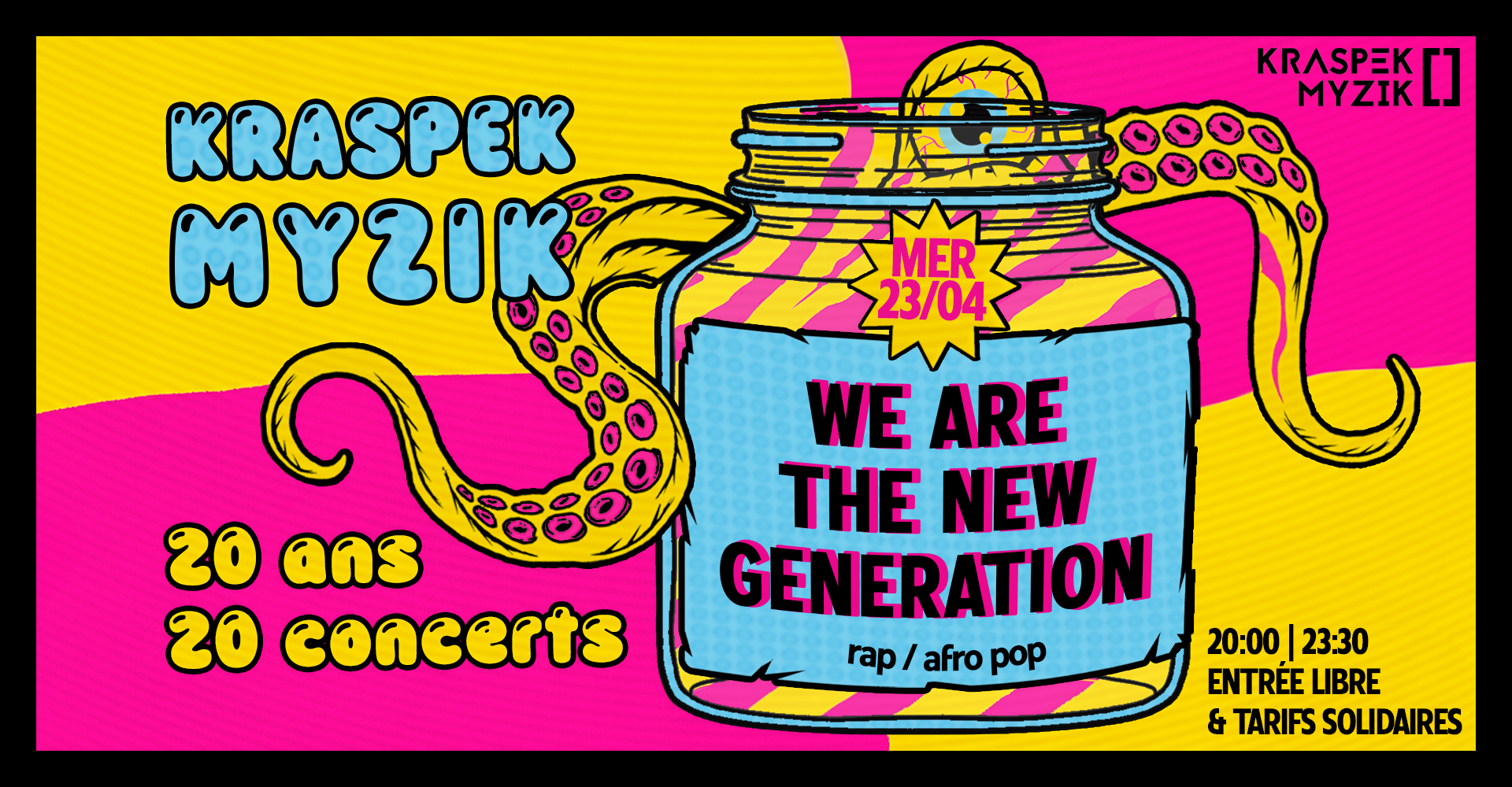 We Are The New Generation est un collectif à géométrie variable formé de jeunes musiciens originaires de Guinée Conakry, du Liberia, du Sierra Leone, du Congo, du Ghana, de l’Angola… qui se retrouvent régulièrement lors de résidences de création, accompagnés par deux musiciens professionnels, Cédric de la Chapelle et Sébastien Finck. Ils écrivent et chantent leurs préoccupations, leurs rêves et leurs parcours de vie. Conçues par l’association Pour la Suite du Monde, ces résidences sont des temps dédiés à la passion pour la musique, l’écriture et le son. Elles construisent du collectif et participent à l’accueil des jeunes exilés sur le territoire.