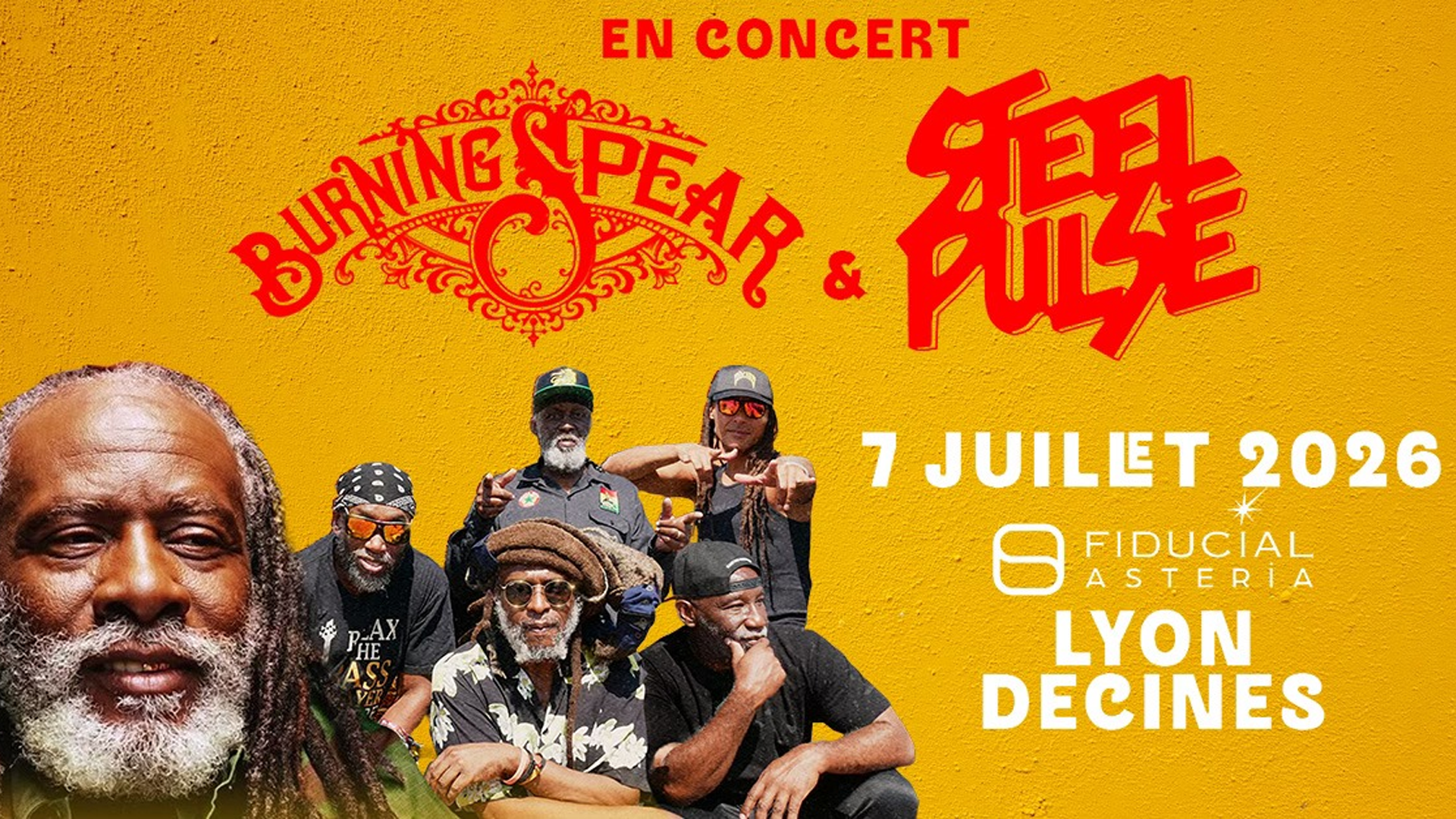 Les deux légendes du reggae Burning Spear et Steel Pulse seront réunies dans un même concert à la Fiducial Astéria.