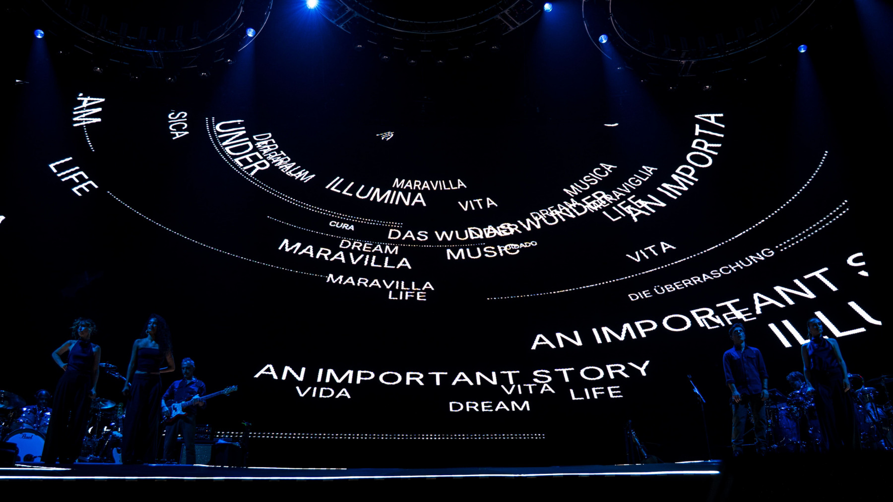 Construit en plusieurs tableaux, le spectacle alterne constamment entre moments rythmés et séquences plus contemplatives. Fidèle à l’architecture de son album Lux, le show se déploie comme une pièce en plusieurs actes mêlant influences lyriques, flamenco, électro et pop expérimentale. Entre chaque partie, des intermèdes viennent enrichir l’expérience, entre mini concertos de l’orchestre et images de coulisses mettant en scène la troupe de danseurs.