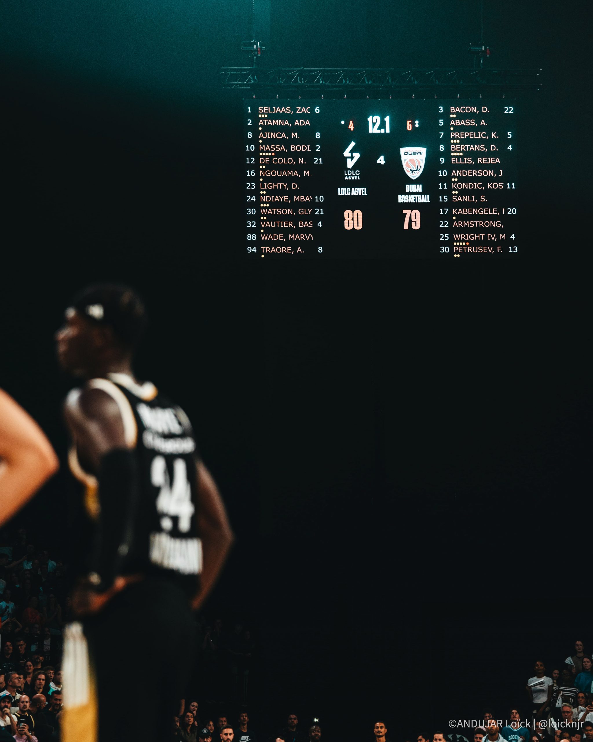 Hier soir, dans une LDLC Arena en fusion et dans une ambiance incandescente, l’ASVEL a renversé Dubai Basketball au terme d’un dernier quart-temps de feu, s’imposant 85-79 devant un public électrique. Retour en images par Loïck Andujar.