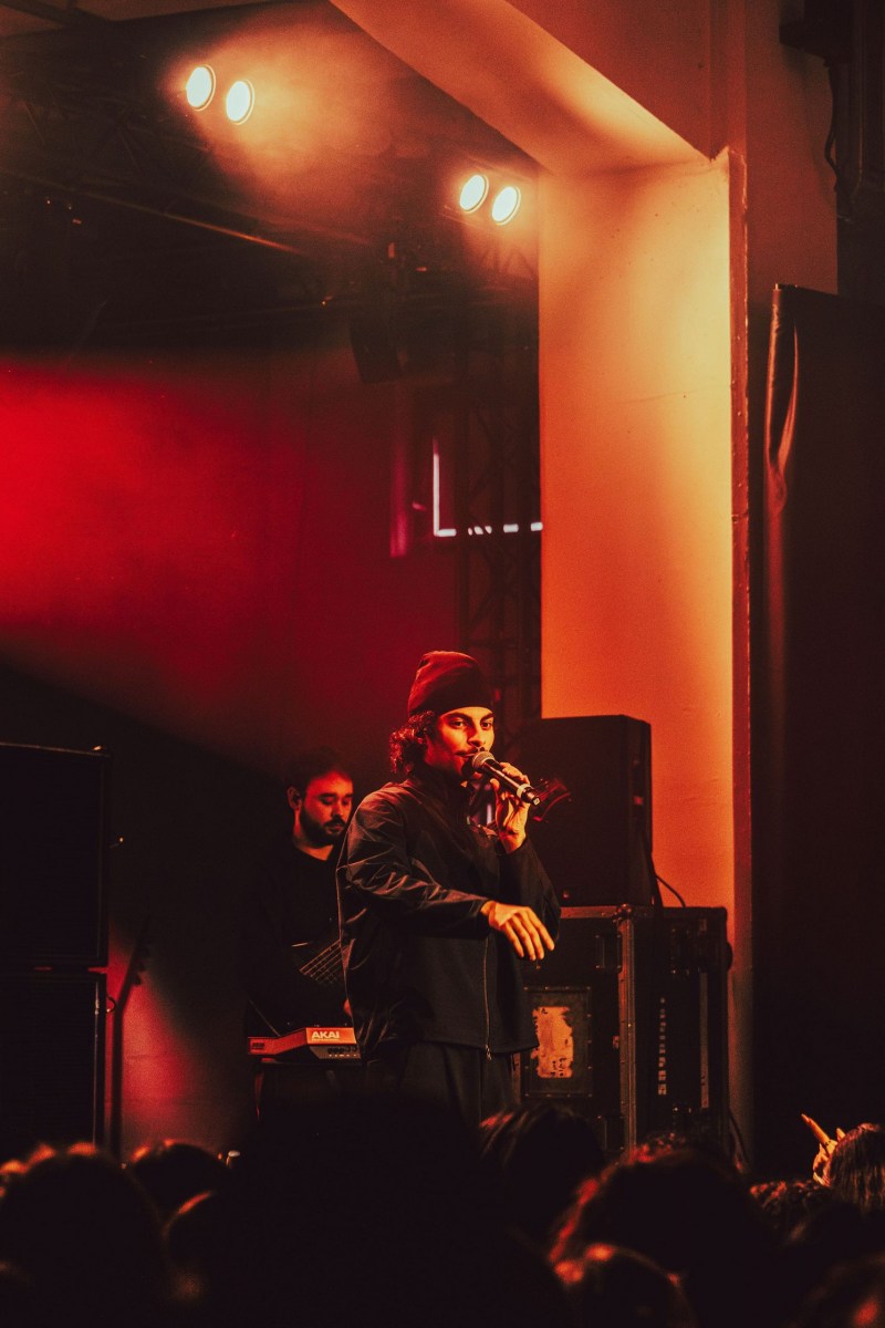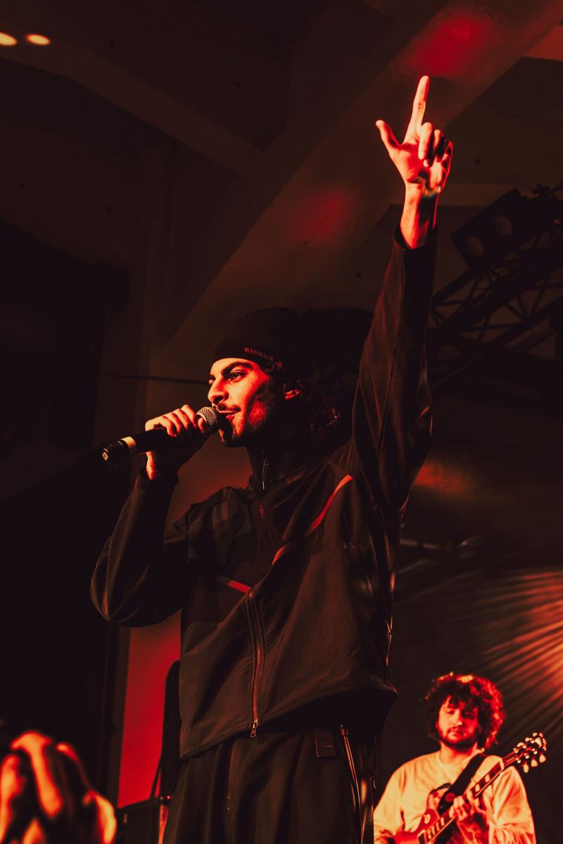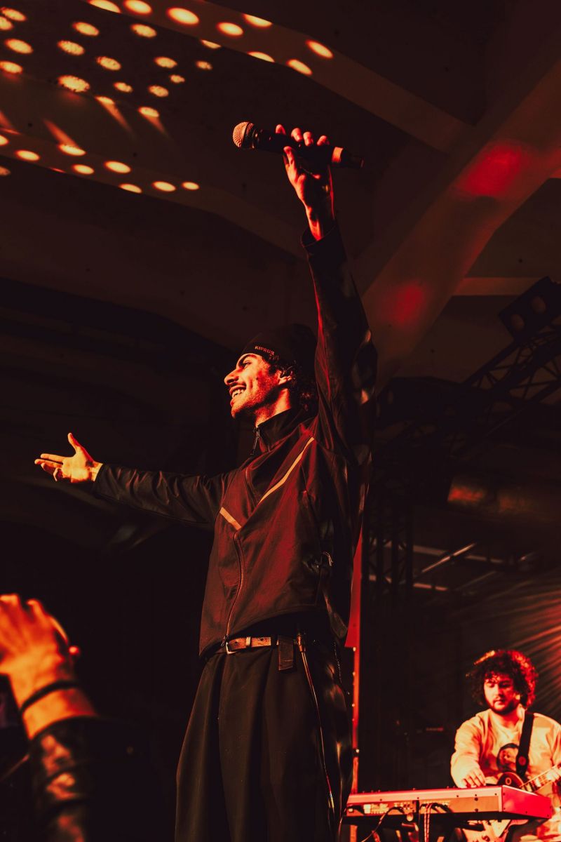 Après une première partie assurée par Fawn, les lumières s’éteignent. Les musiciens entrent en scène, rapidement rejoints par Georgio, qui démarre fort avec Sans surprise. La machine est lancée. Pendant plus d’une heure, il alterne titres de Gloria et morceaux plus anciens, tissant un fil cohérent entre les différentes étapes de sa carrière. La setlist, particulièrement bien construite, joue habilement sur les contrastes. Les moments suspendus avec Diamant v2, Le temps n’emporte rien, Grillz, Hôtel 5 étoiles (interprété au milieu de la fosse) laissent généralement place ensuite à des séquences bien plus explosives. NOONNNN, Brûle, 7 fois déclenchent les premiers pogos, jusqu’à une version rock et survoltée de Vendredi 13 pour conclure le concert. Il n’oublie bien sûr pas son attachement au rap français en nous offrant un freestyle improvisé.