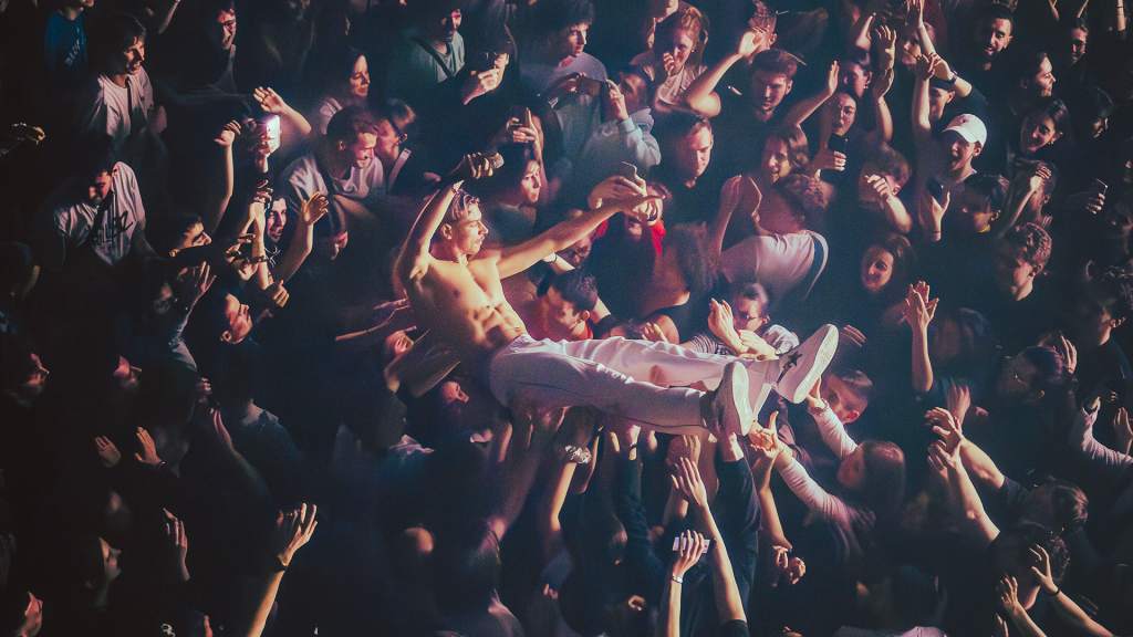Après une première partie assurée par Fawn, les lumières s’éteignent. Les musiciens entrent en scène, rapidement rejoints par Georgio, qui démarre fort avec Sans surprise. La machine est lancée. Pendant plus d’une heure, il alterne titres de Gloria et morceaux plus anciens, tissant un fil cohérent entre les différentes étapes de sa carrière. La setlist, particulièrement bien construite, joue habilement sur les contrastes. Les moments suspendus avec Diamant v2, Le temps n’emporte rien, Grillz, Hôtel 5 étoiles (interprété au milieu de la fosse) laissent généralement place ensuite à des séquences bien plus explosives. NOONNNN, Brûle, 7 fois déclenchent les premiers pogos, jusqu’à une version rock et survoltée de Vendredi 13 pour conclure le concert. Il n’oublie bien sûr pas son attachement au rap français en nous offrant un freestyle improvisé.