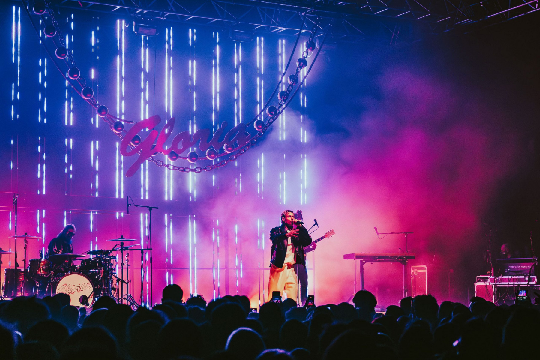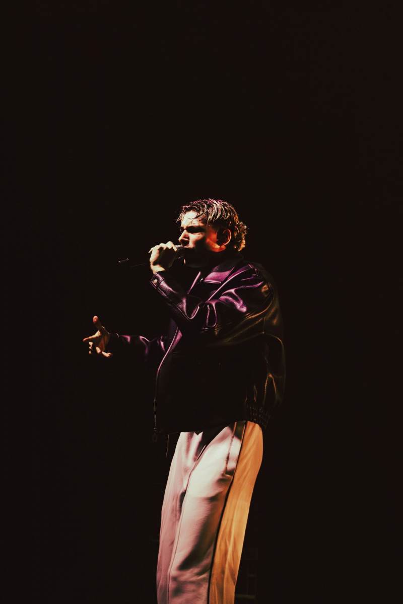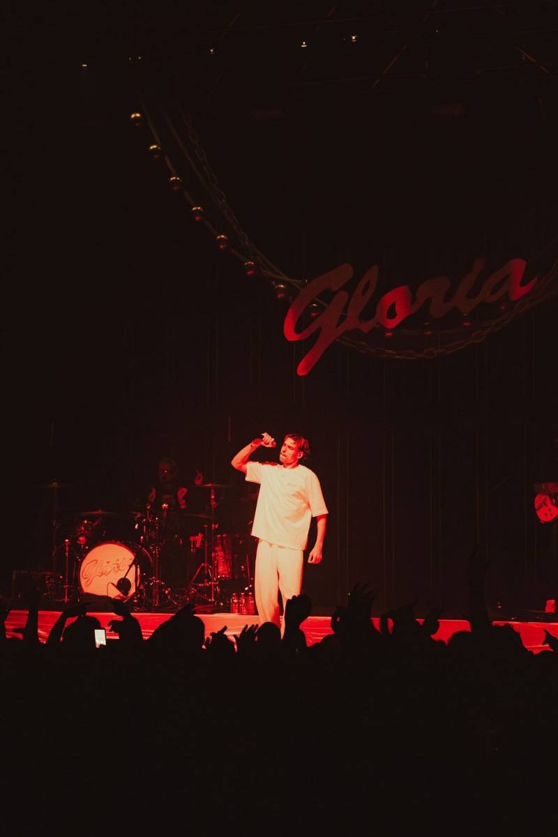 Après une première partie assurée par Fawn, les lumières s’éteignent. Les musiciens entrent en scène, rapidement rejoints par Georgio, qui démarre fort avec Sans surprise. La machine est lancée. Pendant plus d’une heure, il alterne titres de Gloria et morceaux plus anciens, tissant un fil cohérent entre les différentes étapes de sa carrière. La setlist, particulièrement bien construite, joue habilement sur les contrastes. Les moments suspendus avec Diamant v2, Le temps n’emporte rien, Grillz, Hôtel 5 étoiles (interprété au milieu de la fosse) laissent généralement place ensuite à des séquences bien plus explosives. NOONNNN, Brûle, 7 fois déclenchent les premiers pogos, jusqu’à une version rock et survoltée de Vendredi 13 pour conclure le concert. Il n’oublie bien sûr pas son attachement au rap français en nous offrant un freestyle improvisé.