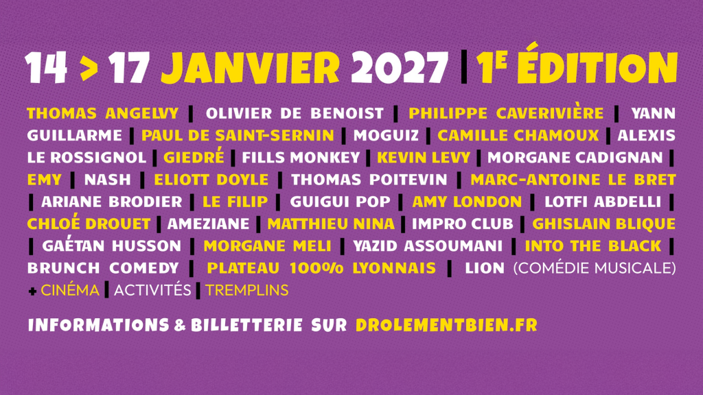 Lyon va accueillir pour la première fois le festival Drôlement Bien, du 14 au 17 janvier 2027. Né à Besançon, l’événement s’y est imposé comme le premier festival d’humour de France avant de s’installer désormais dans la métropole lyonnaise.